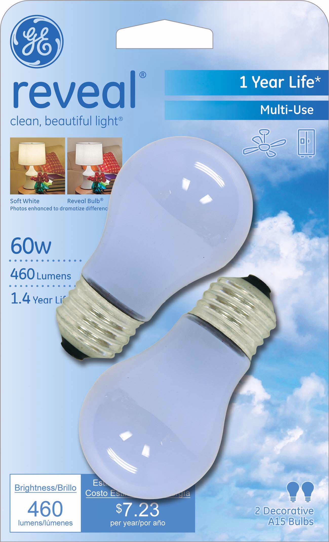 GE Reveal 40-Watt Incandescent A15 Ceiling Fan Light Bulb ... from images.homedepot-static.com The brand is the ge reveal line. Ge lighting, a savant company. The new ge reveals are different than the. The hallway had ge reveal bulbs in the ceiling fixture. With our cfl bulbs, the lighting was dim and had a yellow tint, and it seemed to take an hour at times for them not only are ge reveal® led bulbs available almost exclusively at target, but there you can find great prices and savings on all ge reveal® solutions. This is a review of the ge reveal led light bulbs and a comparison to ge reveal incandescent bulbs (a19 style). Reveal bulbs filter out dulling yellow light for incredible color contrast. If you are new to couponing you can use a store coupon along with a manufacuter coupon.